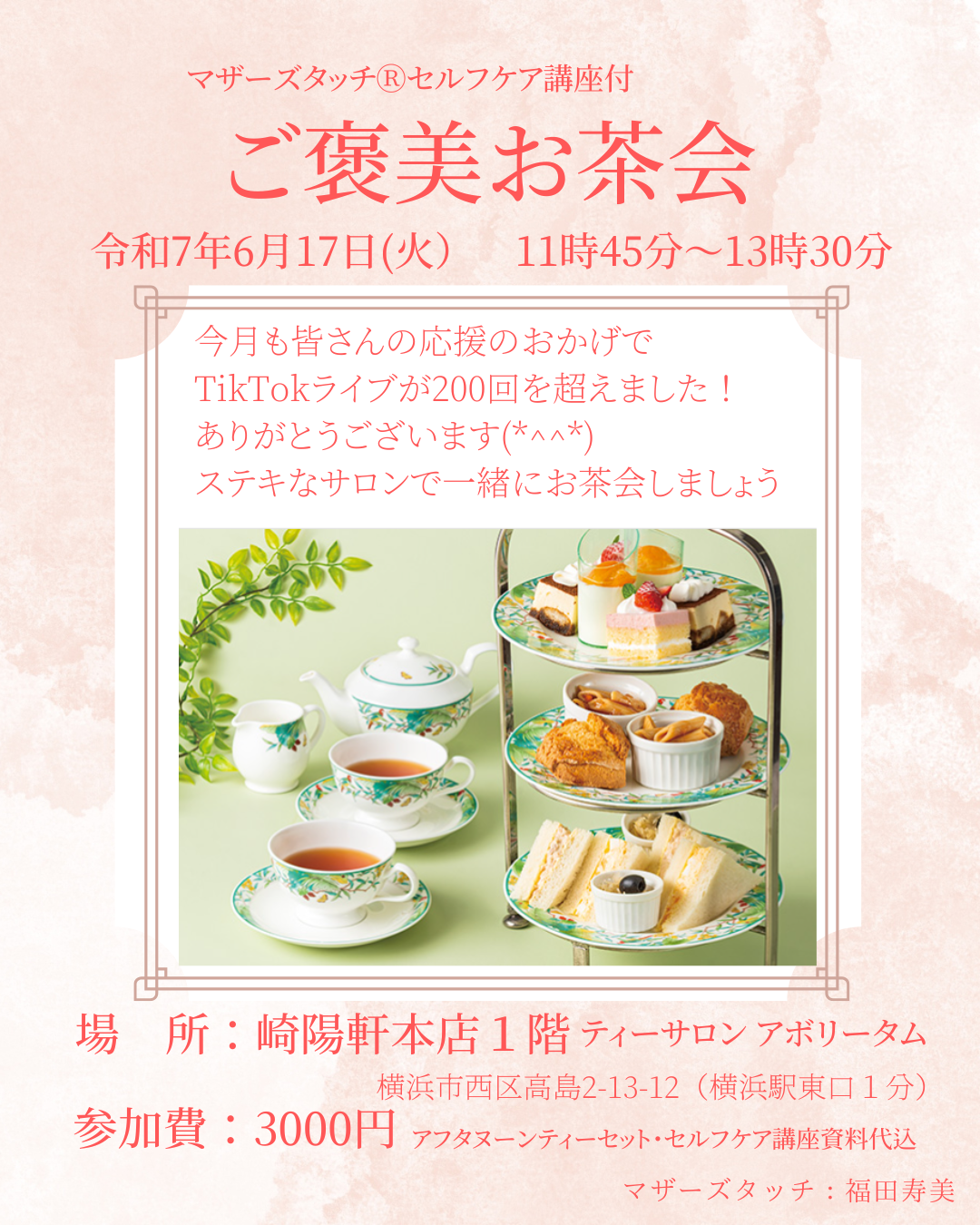 みなさまへの感謝の気持ちを込めて、第2回「ご褒美お茶会」を開催させていただきます❣️