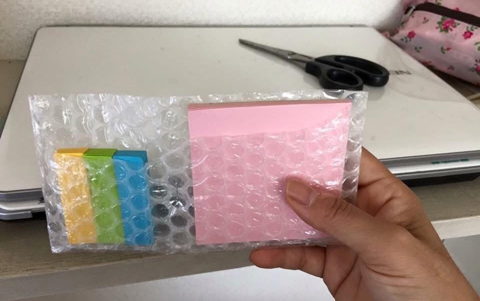 梱包のプチプチで付箋もスッキリ